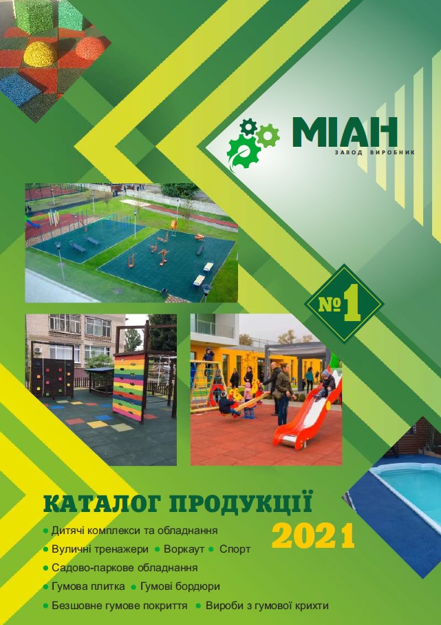 Основним видом продукції, що виробляється НВП "МІАН" є травмобезпечна гумова плитка . Виготовлена з якісної гумової сировини за унікальною технологією, вона має точні геометричні розміри, зносостійкість, міцність, ударопоглинаючі, амортизаційні та ортопедичні властивості. Плитка виробляється в різних кольорах, має рівну лицьову сторону і зберігає свої властивості при температурах від -40 до + 50 градусів.